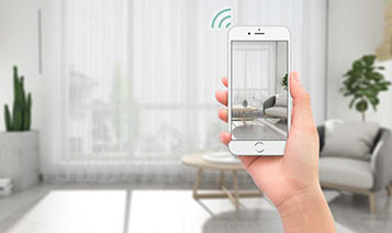 | 到了提前設定時間段,自能背景音樂自動播放起床曲,電動窗簾緩緩打開,開始播報今日天氣及行程安排。 | 當主人離家時,可以通過手機App一鍵關閉家中所有電器,離家自動啟動